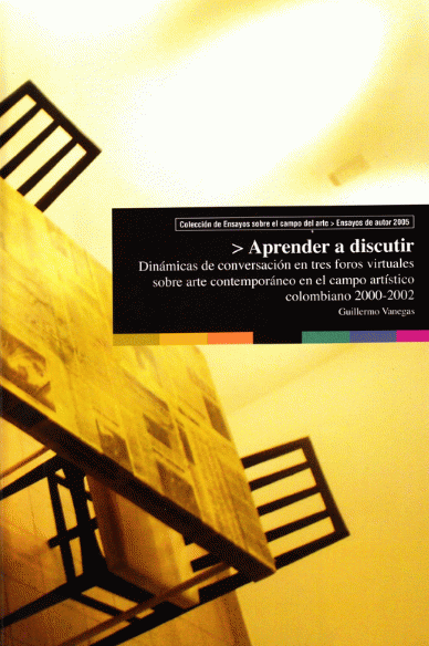 Aprender a discutir : dinámicas de conversación en tres foros virtuales sobre arte contemporáneo en el campo artístico colombiano 2000-2002 / Guillermo Vanegas.
