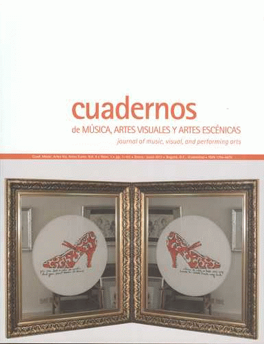 Cuadernos de música, artes visuales y artes escénicas Vol. 8 No. 1= Journal of music, visual, and performing arts. Pontificia Universidad Javeriana, Facultad de Artes; traducción a portugués Mónica Ávila García, Jimena Andrade; traducción a inglés Claudia Salamanca.
